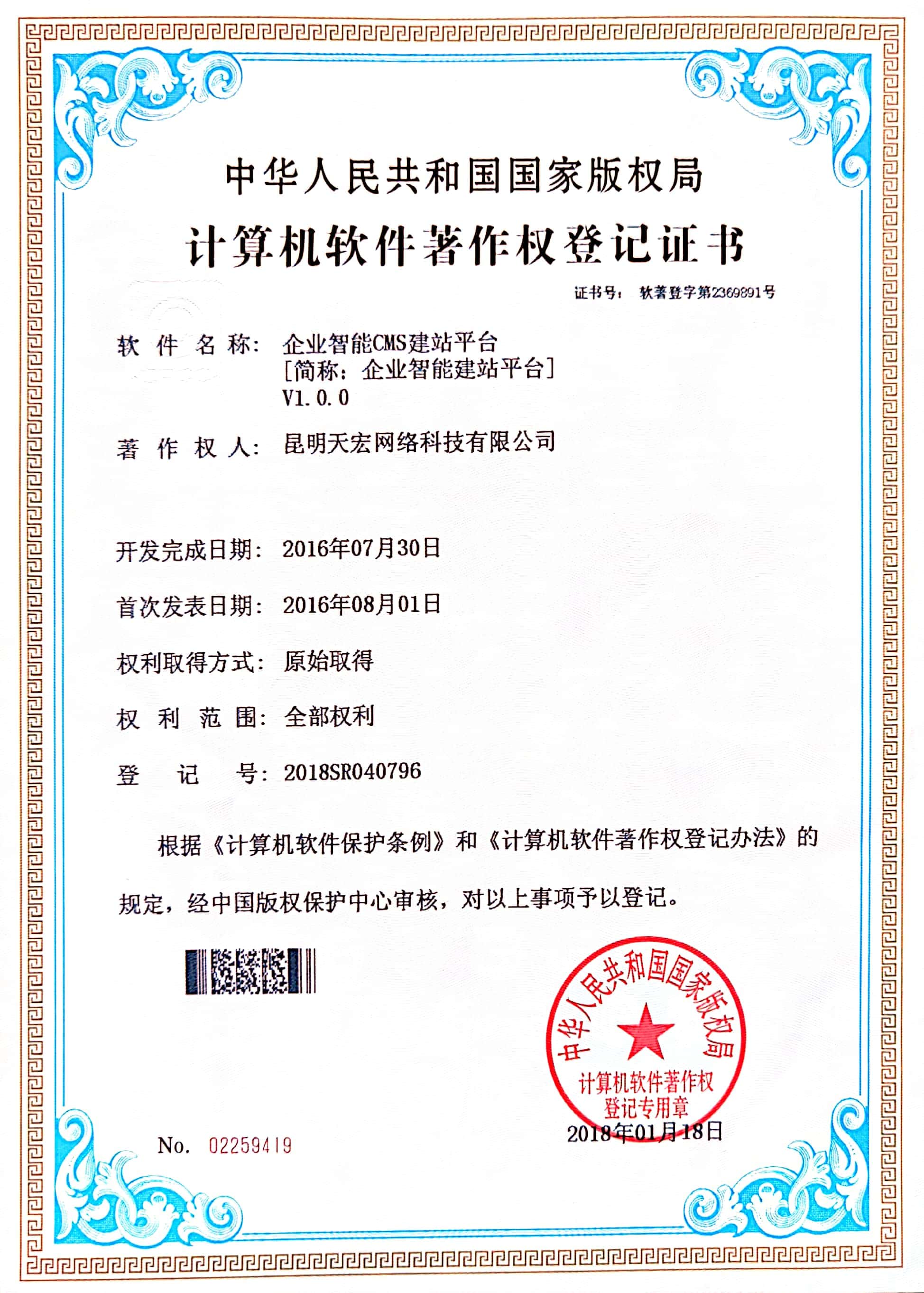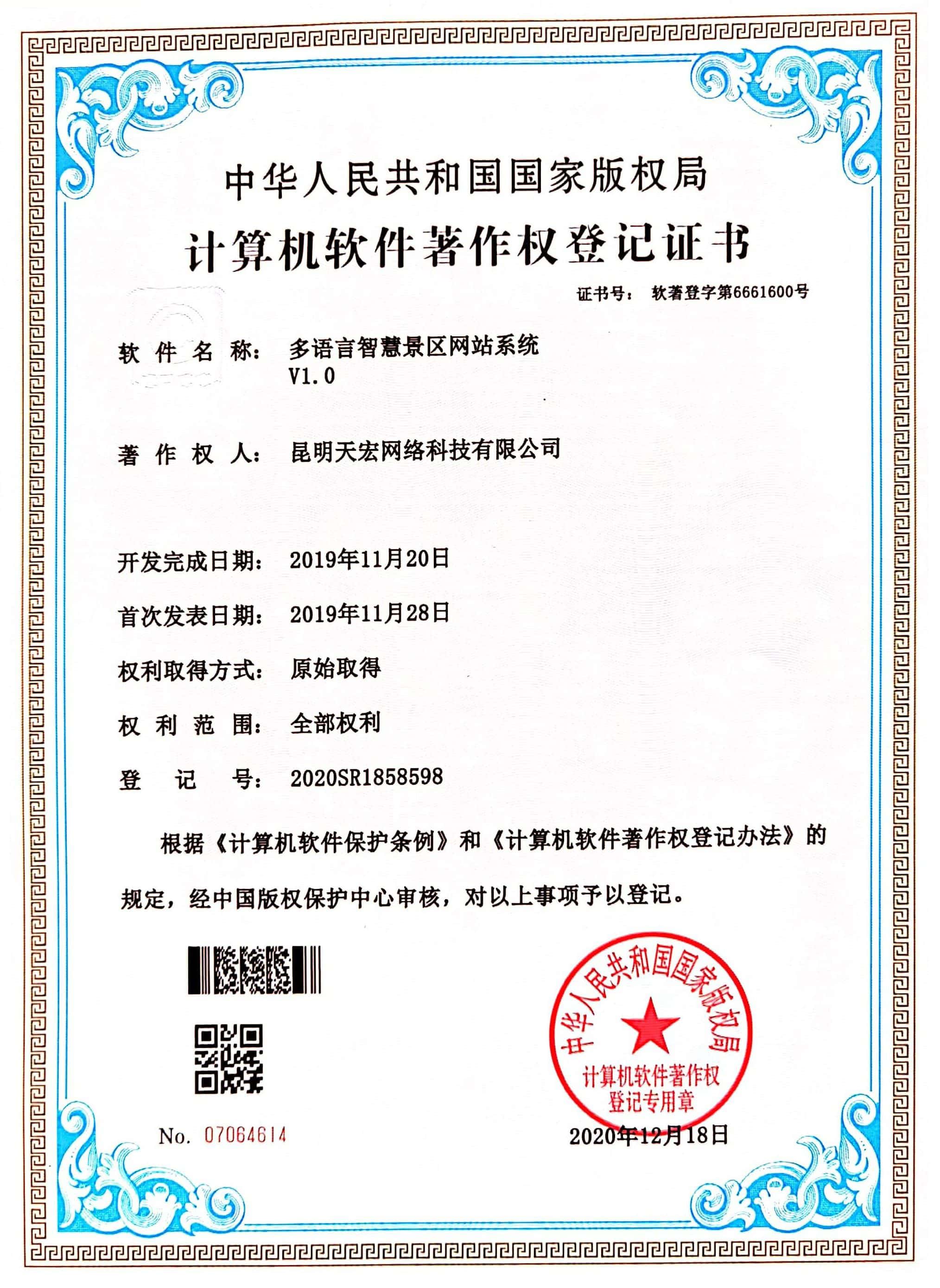 天宏網(wǎng)絡通過不斷的研發(fā)創(chuàng)新,現(xiàn)擁有50多項計算機軟著證書,包括多商家點餐系統(tǒng)、門店收銀管理系統(tǒng)、通用OA協(xié)同辦公管理系統(tǒng)、智慧商圈運營管理平臺、天宏健康智慧+系統(tǒng)、同城O2O管理系統(tǒng)等。